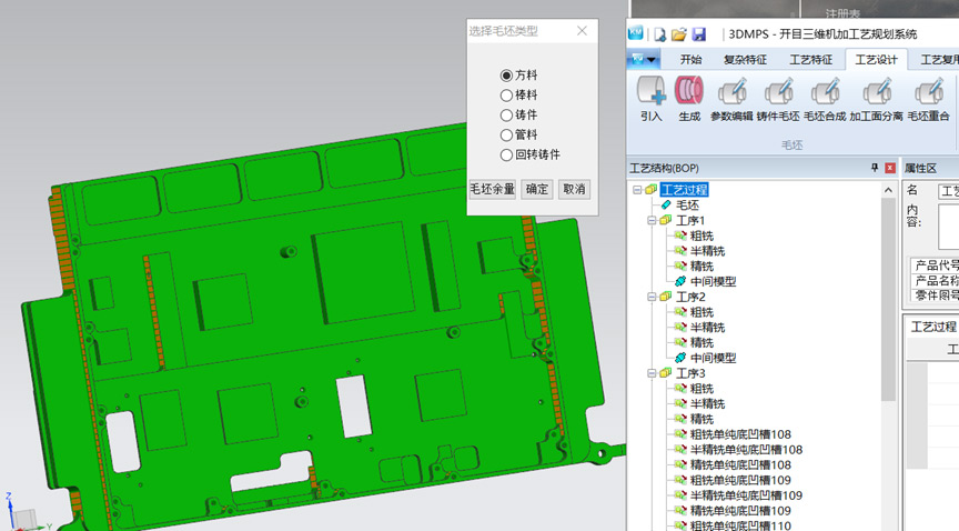 3DMPS是基于MBD技術(shù),通過識(shí)別3D數(shù)模的制造特征及尺寸信息、公差和精糙度等信息,基于專家知識(shí)庫智能推理,自動(dòng)獲取各制造特征的加工方法,生成零件的加工工藝過程、毛坯模型及各工序的中間模型,并支持加工過程仿真,工藝人員更準(zhǔn)確、更高效地完成加工工藝設(shè)計(jì),從而縮短生產(chǎn)準(zhǔn)備周期,提高產(chǎn)品質(zhì)量,降低研發(fā)成本,提高市場(chǎng)競(jìng)爭(zhēng)力。