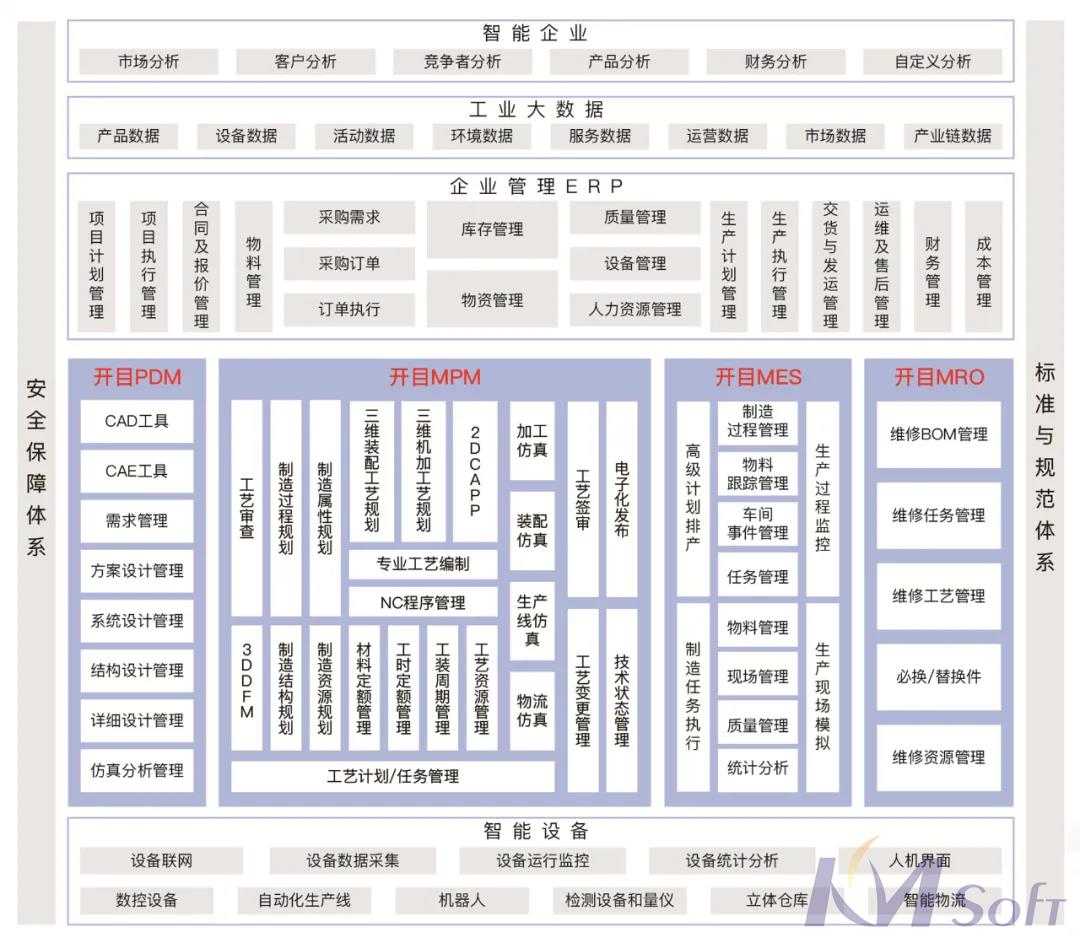 隨著我國政府在制造業信息化方面相繼提出和推動“制造業信息化工程”、“兩化融合”、“兩化深度融合”以及“智能制造”。開目軟件伴隨著這個過程一路走來,完成了從單元的工具軟件產品到提供設計、工藝、生產、管理、服務的軟件家族的轉變,最終形成了一個完整的智能制造整體解決方案。