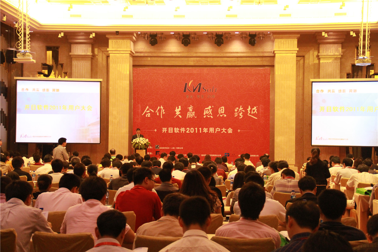 2011年5月26日,開目軟件公司以“合作?共贏?感恩?跨越”為主題的用戶大會(huì)在武漢隆重舉行。上海電氣集團(tuán)、電子科技集團(tuán)、三一集團(tuán)、沈陽金杯、力帆實(shí)業(yè)、柳州五菱、陜重汽、山西防爆、廣日電梯等來自全國各地的300余名開目用戶代表參加了本次會(huì)議。這是開目軟件創(chuàng)立20年來首次舉辦用戶大會(huì),具有重要的里程碑意義。會(huì)上,開目公司董事長陳卓寧教授發(fā)表了 “合作?共贏?感恩?跨越”的主題演講,陳董說:“開目過去的20年,是與用戶合作、共贏的20年。用戶的需求、關(guān)心和支持是開目寶貴的財(cái)富。”開目公司總經(jīng)理陳萬領(lǐng)博士以“專業(yè)、專注、創(chuàng)新、共贏,打造中國高端工業(yè)軟件品牌”為題,表示開目在今后的發(fā)展中要“有所為,有所不為”,堅(jiān)持“專業(yè)、專注、創(chuàng)新,共贏”的經(jīng)營理念和“創(chuàng)新、務(wù)實(shí)、進(jìn)取、協(xié)作、誠信”的企業(yè)文化,與客戶一起共同打造中國高端工業(yè)軟件品牌,實(shí)現(xiàn)共贏。