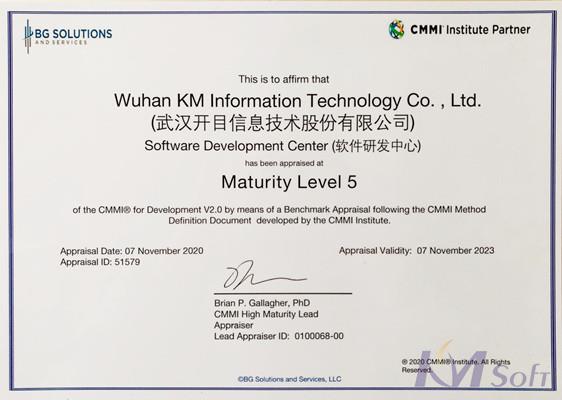CMMI即軟件能力成熟度集成模型,是衡量軟件企業能力成熟度和項目管理水平的權威標準,被公認為軟件企業走向國際市場的通行證。CMMI 5級是當今世界軟件能力成熟度難度最大、等級最高的評估,通過該評估即代表軟件企業的軟件能力成熟度達到了最高級別。