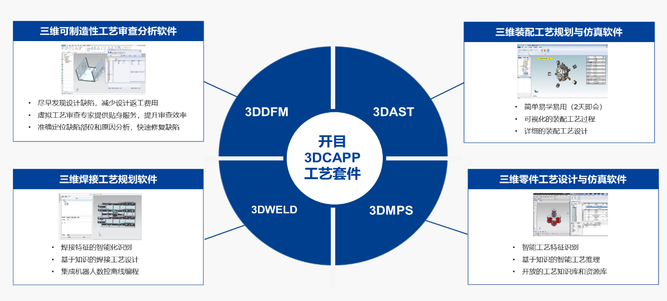 時至今日,開目公司已形成了完整的智能制造解決方案及高端工業軟件產品體系,包含KMPLM、KMMPM、KMMOM等一系列覆蓋產品研發、工藝設計、生產制造的一體化管理平臺以及以KMCAD、KMCAPP、KM3DDFM、KM3DAST、KM3DMPS、KM3DWELD、KM3DVIEWER為代表的研發設計類工具軟件產品,全方位助力中國制造企業向“中國智造”邁進。