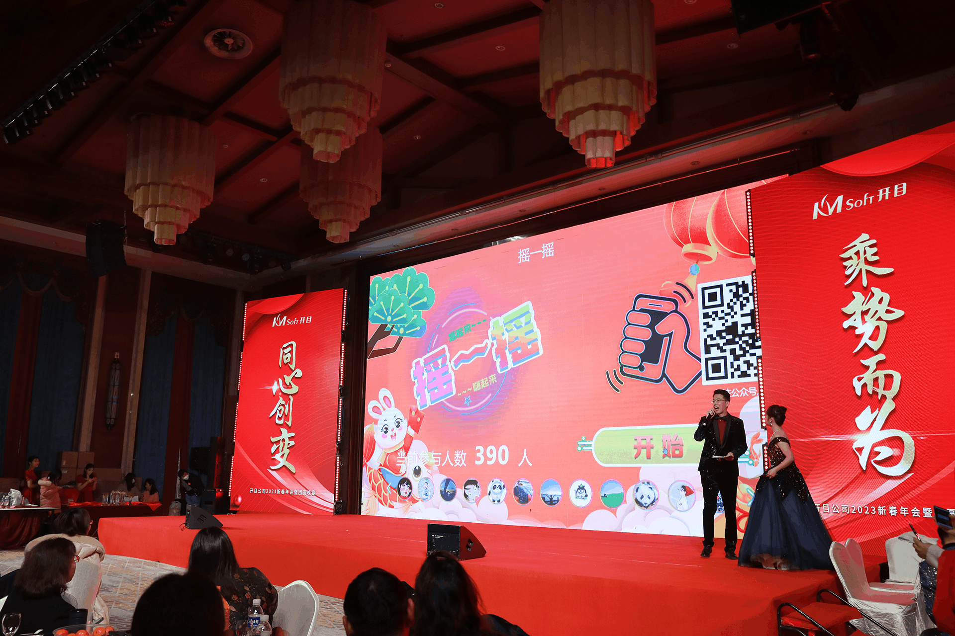 同時,本次年會開啟了多輪線上線下聯合的互動游戲抽獎環節,一波波抽獎將年會氛圍推向一個又一個沸點。花式抽獎,想怎么抽就怎么抽,套紅包、數鈔票、搖一搖、抽大獎……超多的獎品,超頂的福利,不斷加碼的大獎,一時間場下歡呼聲不斷,現場氣氛瞬間燃爆。