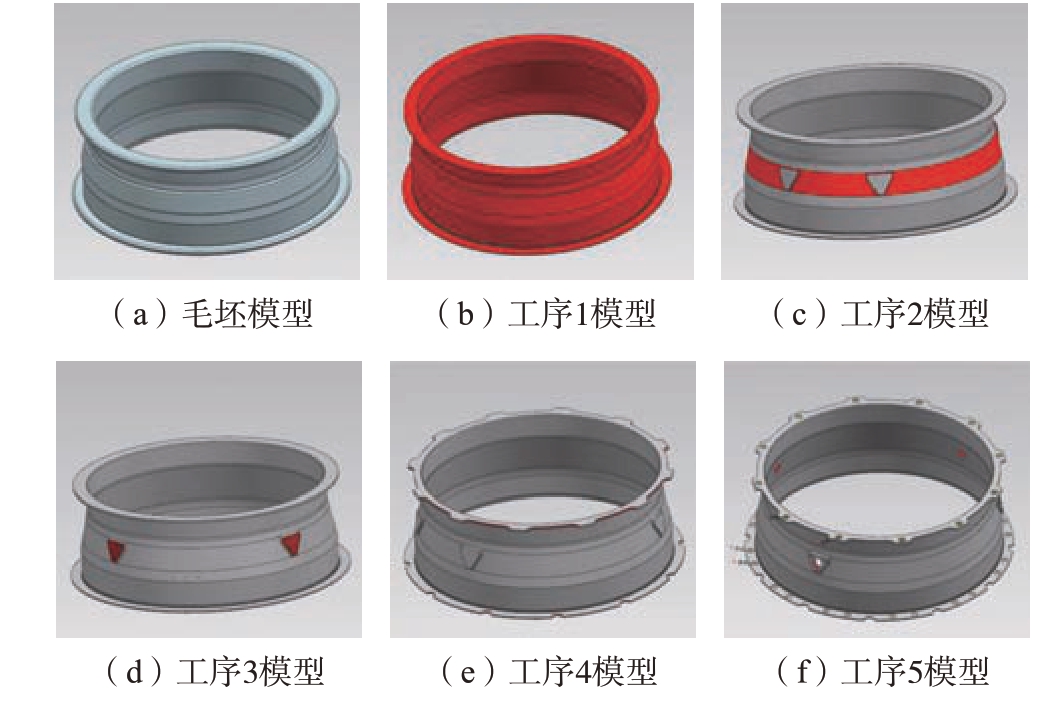(2)通過工藝推理獲得特征的加工步驟與余量,然后根據典型機匣工藝模板確定機匣零件工藝路線,自動構建三維工藝模型,典型機匣零件加工過程如圖12 所示。