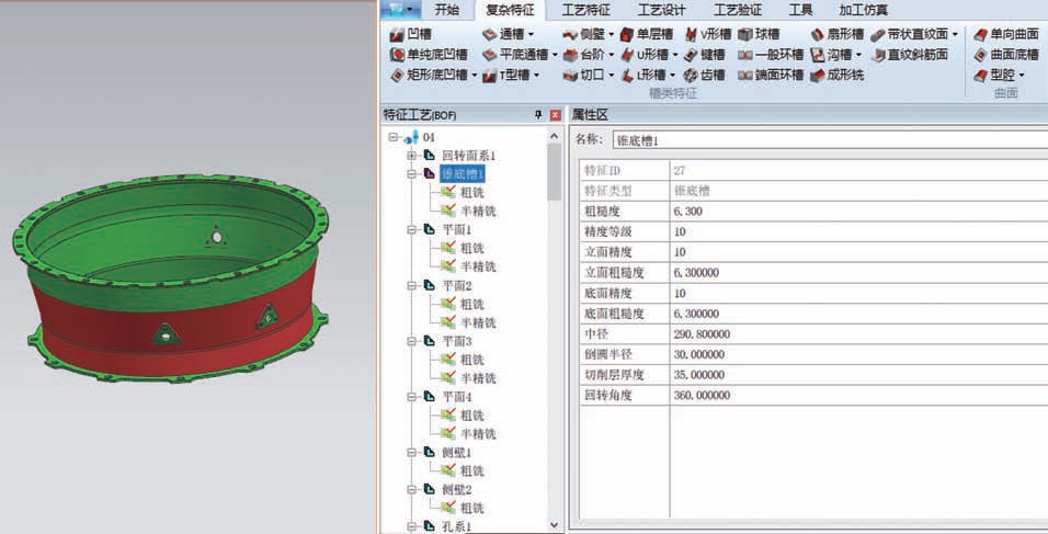 基于MBD 的三維數字化工藝在機匣產品中的應用,以機匣產品為核心,基于MBD 模型進行制造特征識別,結合特征參數與加工方法實現工藝的智能推理與規范化設計,自動生成工序模型,達到工藝高質量和高效率的快速設計。