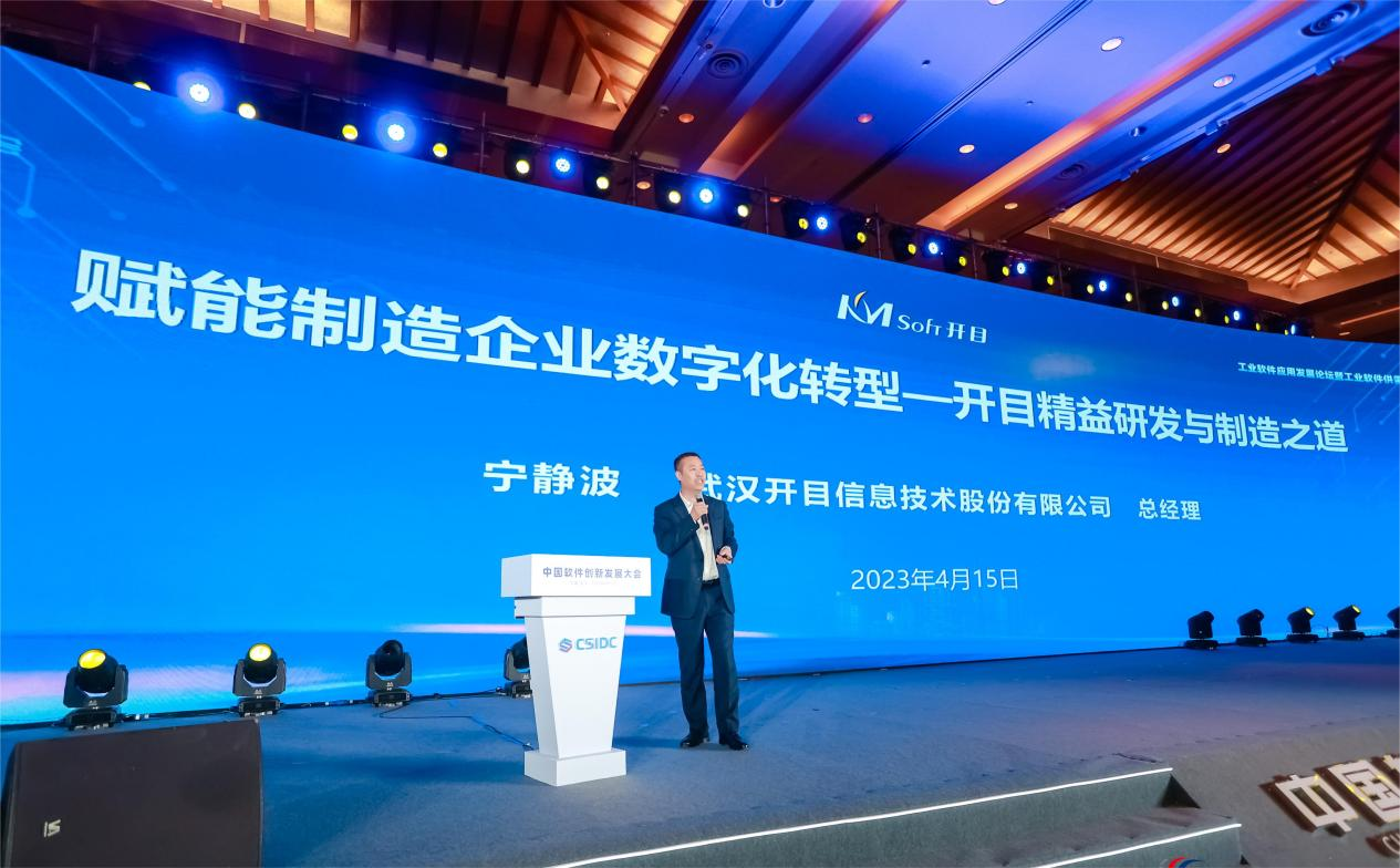 隨后,開目軟件寧靜波總經理受邀發表《賦能制造企業數字化轉型—開目精益研發與制造之道》主題演講。寧總從數字化轉型趨勢和工業軟件國產化替代特點切入,介紹了開目精益研發與制造整體解決方案、轉型框架和實施方法。