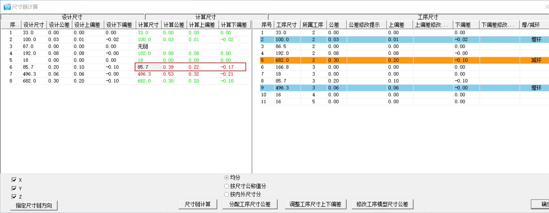 3DMPS工序尺寸鏈計(jì)算功能,可以自動獲取尺寸鏈的組成環(huán),自動識別工序模型的封閉環(huán)、增環(huán)、減環(huán)并進(jìn)行尺寸鏈解算,并通過計(jì)算結(jié)果推薦優(yōu)化建議。