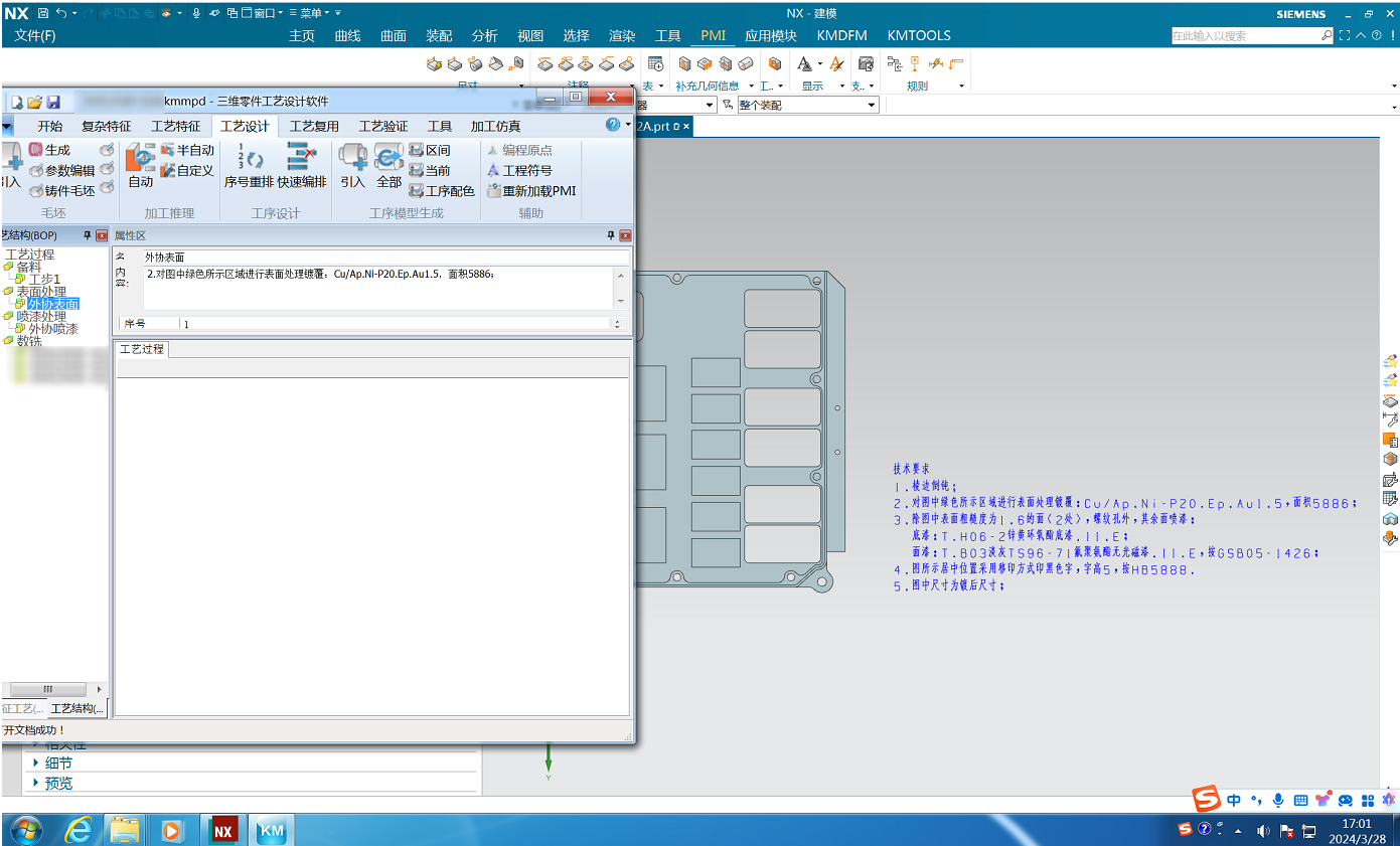 3DMPS 11.0在原有的典型工藝路線引用的基礎(chǔ)上,通過讀取分析設(shè)計(jì)模型上的技術(shù)要求與標(biāo)注信息,快速生成對應(yīng)加工工序并自動根據(jù)標(biāo)注信息填寫對應(yīng)典型加工內(nèi)容,實(shí)現(xiàn)工藝路線根據(jù)零件種類快速生成,極大提升了工藝設(shè)計(jì)的效率。