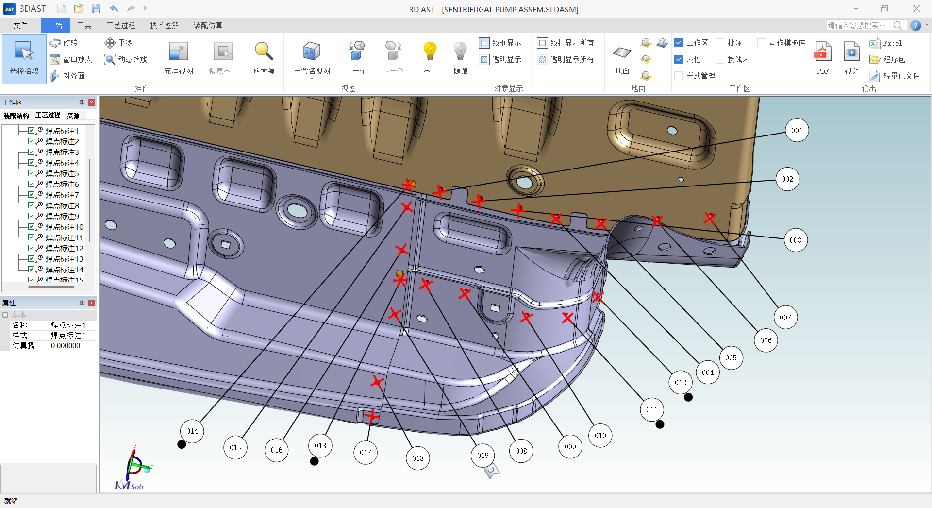3DAST 18.0 深度融合汽車行業(yè)焊接工藝標(biāo)準(zhǔn),新增焊點(diǎn)標(biāo)注、焊縫標(biāo)注等多種功能,用戶可通過簡(jiǎn)單的操作,在三維模型中快速、精準(zhǔn)地完成焊點(diǎn)標(biāo)注,為焊接工序提供清晰、準(zhǔn)確的指導(dǎo)依據(jù),有效提高焊接質(zhì)量,縮短汽車產(chǎn)品研制周期。