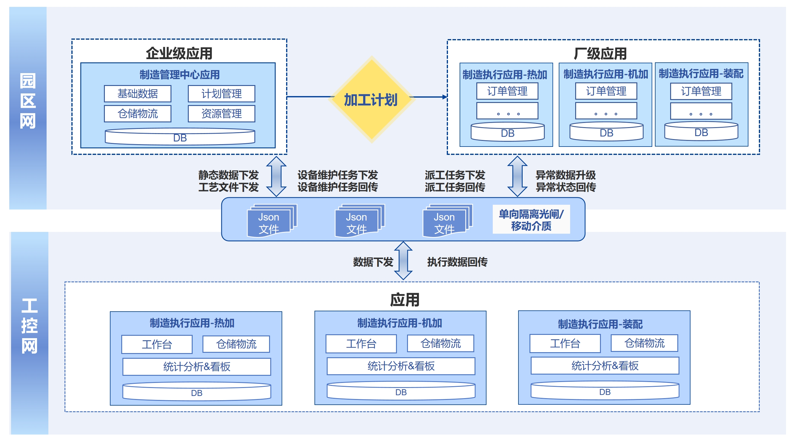 高端制造企業生產車間數據安全至關重要。當前,企業多通過物理方式將內部網絡與工控網絡的數據進行隔離,因此訂單數據、工藝路線、產品BOM、生產數據、外協進度、設備生產線互聯等數據需要經過復雜的流程進行中轉,數據流轉效率極低且容易丟失。