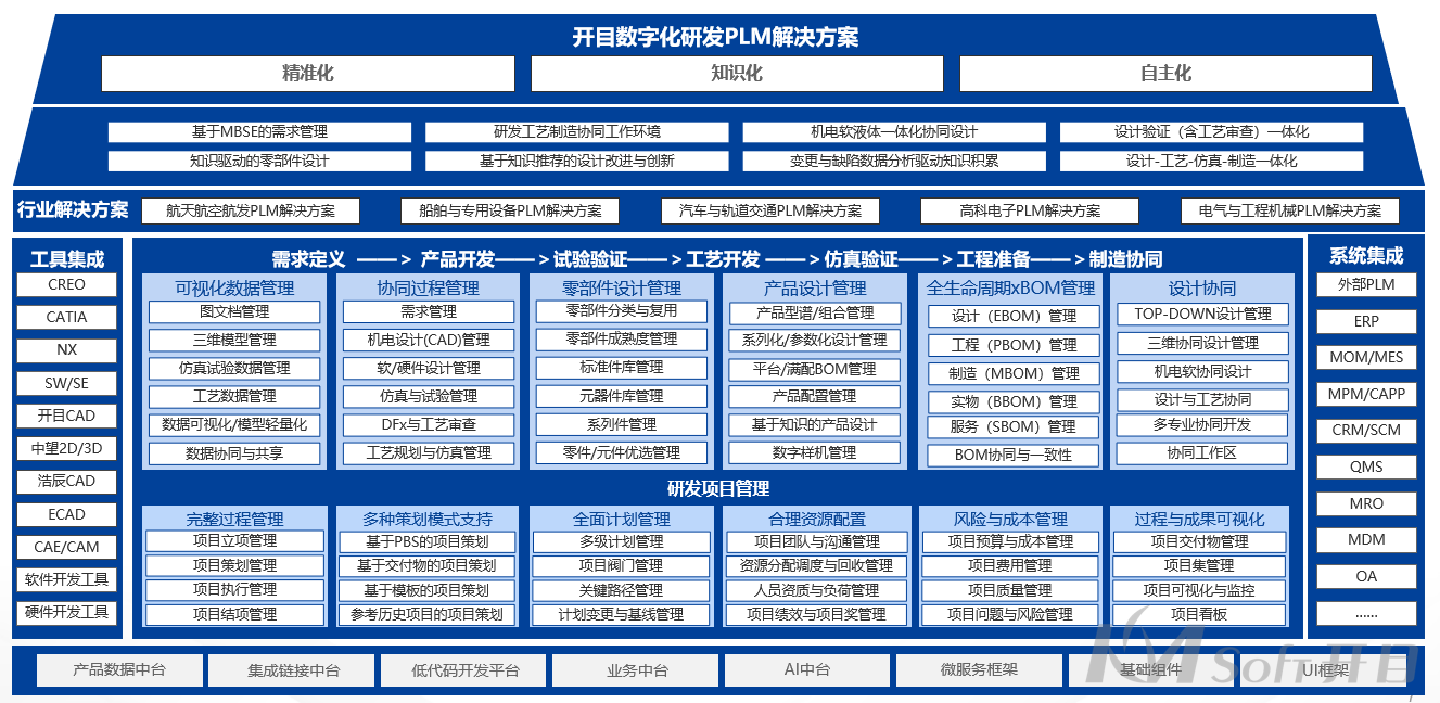 經(jīng)過(guò)對(duì)業(yè)務(wù)部門的深入調(diào)研,以及多輪技術(shù)交流,開(kāi)目團(tuán)隊(duì)最終為企業(yè)精心繪制了藍(lán)圖方案。項(xiàng)目將重點(diǎn)為企業(yè)搭建集團(tuán)級(jí)的產(chǎn)品數(shù)據(jù)管理、流程管理、變更管理、項(xiàng)目管理、BOM管理、跨組織的設(shè)計(jì)協(xié)同管理、結(jié)構(gòu)化工藝管理、系統(tǒng)集成等統(tǒng)一的產(chǎn)品全生命周期管理平臺(tái),實(shí)現(xiàn)對(duì)企業(yè)的產(chǎn)品數(shù)據(jù)從需求評(píng)估、立項(xiàng)、產(chǎn)品設(shè)計(jì)、樣品、試產(chǎn)到量產(chǎn)的全業(yè)務(wù)過(guò)程管理,力爭(zhēng)將沃德汽車部件打造汽車零部件制造行業(yè)的數(shù)字化轉(zhuǎn)型新標(biāo)桿。